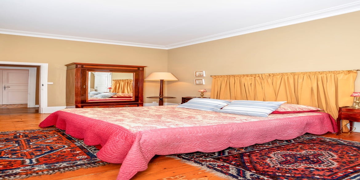 La grande suite est située au 1er étage et propose 65m2 au total, en effet elle dispose d'une chambre parentale avec un coin salon privé et d'une vue imprenable sur le parc et la chaîne de Pyrénées. Elle dispose également d'une 2ème chambre pour 2 adultes (en supplément) et d'une 3ème chambre complémentaire (en supplément) pour 2 adultes. Un vrai confort et plus d'espace pour chaque convives. La salle d'eau est sur le pallier privé pour que chacun puisse en profiter. Idéal pour les grandes familles de 4 à 6 personnes souhaitant se retrouver.